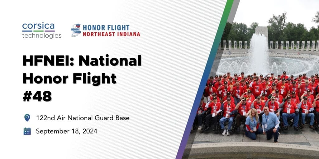 Join us for a day of remembrance and gratitude as we proudly sponsor Honor Flight Northeast Indiana‘s Honor Flight #48 on September 18th. This event is a heartfelt tribute to our veterans, honoring their courage and sacrifice. As a sponsor, Corsica is committed to supporting these heroes on their journey of honor and reflection. Don’t miss this opportunity to be part of a community that celebrates and appreciates the service of our nation’s defenders. Together, let’s make this event a memorable experience for our veterans.